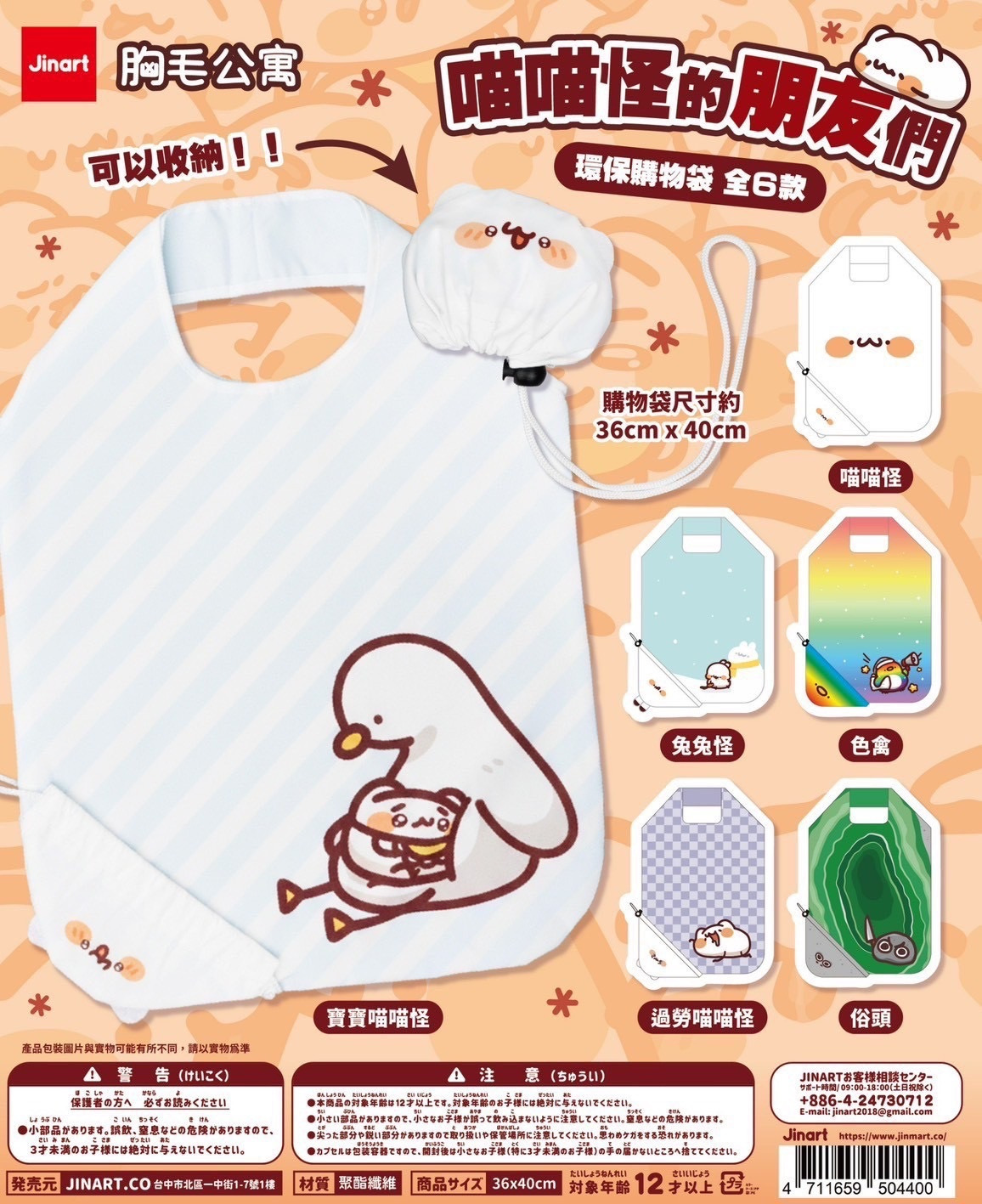 ! JINART 胸毛公寓 喵喵怪的朋友們 環保購物袋 系列盲盒